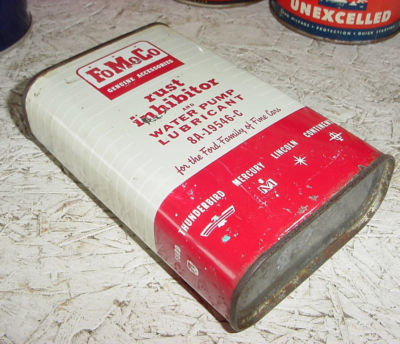 Title (ebay affiliate link): 1950s FOMOCO FORD EDSEL WATER PUMP LUBE Old Tin Oil Can