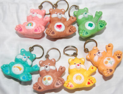 Title (ebay affiliate link): * VINTAGE LOT OF 7 CARE BEAR KEY CHAINS * SITTING * 80s