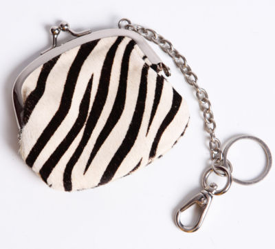Title (ebay affiliate link): vintage REAL FUR zebra print CHANGE PURSE key chain