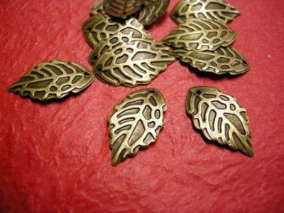 50pc antique bronze filigree leaf pendant-3161