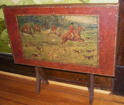 Vintage Antique Foldup Tray Small Card Table Hunt Scene