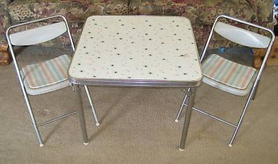 Title (ebay affiliate link): VTG/RETRO CHILD'S METAL FOLDING TABLE & 2 CHAIRS!