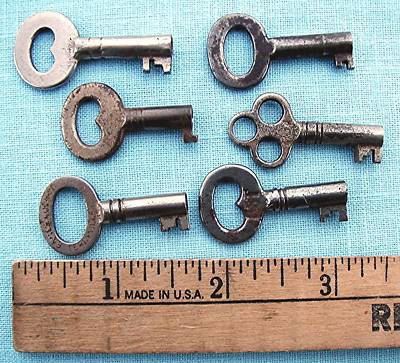 6 Old Steamer Trunk Keys all different