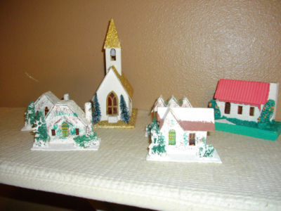 Title (ebay affiliate link): Lot of 6 Vintage Mica Putz Christmas houses, Japan