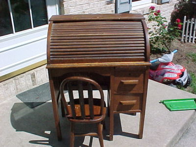 Antique Oak Child Roll Top Rolltop Desk & Chair