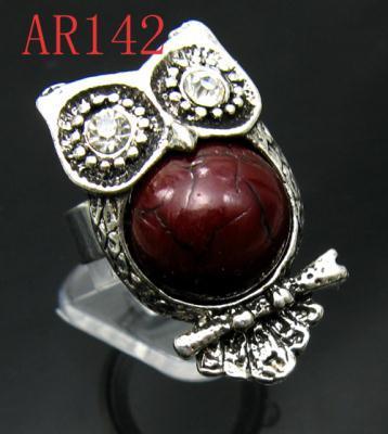 Fashion Antique Silver RhinestoneCrystal Owl Ring AR142