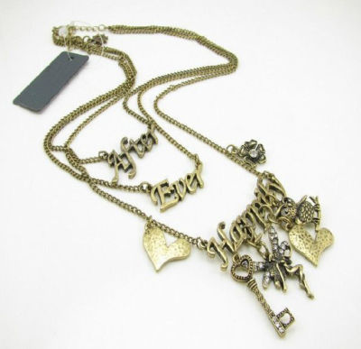 Title (ebay affiliate link): New Antique Angel Owl Love Heart Triple Necklace N27