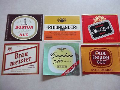 6 32 OZ Beer Labels Boston Canadian Ace Brau Meister