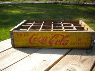 Title (ebay affiliate link): VINTAGE 1969 YELLOW COCA COLA WOODEN SODA CRATE