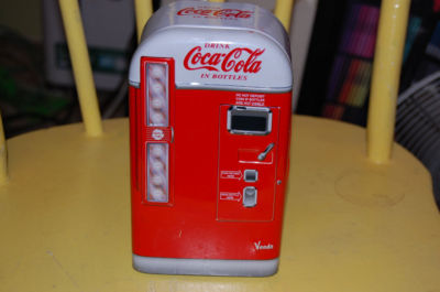 7 in tall tin can Coca-Cola dispenser opens
