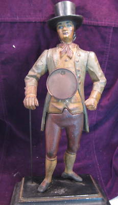 Interesting Antique Walking Man w/Top Hat Clock Base