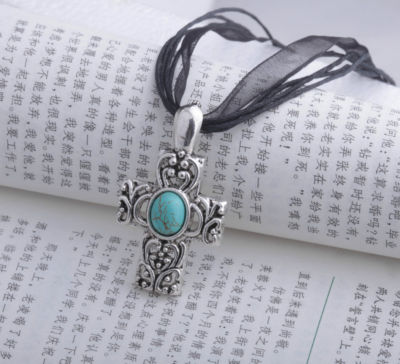 turquoise antique silver cross pendant free shipping