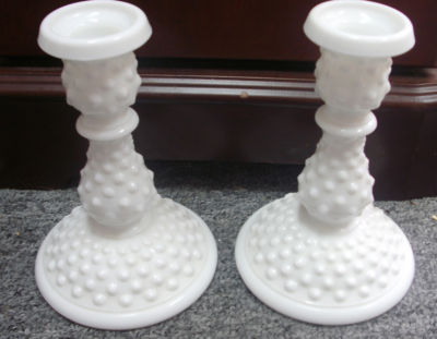Fenton Milk Glass Hobnail Pr Candlestick Holders