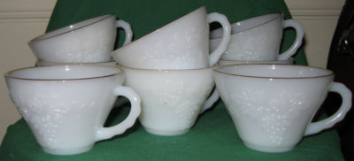 8 milkglass punch bowl cups by"Anchor Hocking/fire-king
