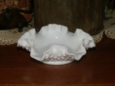 VINTAGE WHITE MILK GLASS HOBNAIL RUFFLE CANDY BOWL DISH