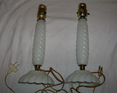 Vintage Pair Milk Glass Dresser Vanity Lamps Swirls