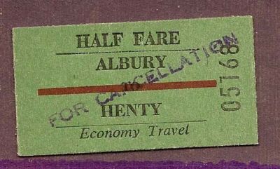 ALBURY - HENTY SYDNEY CITYRAIL RAILWAY TICKET
