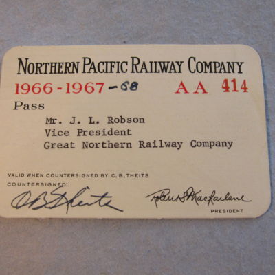 Northern Pacific Railway Pass Issued to VP Robson-1966