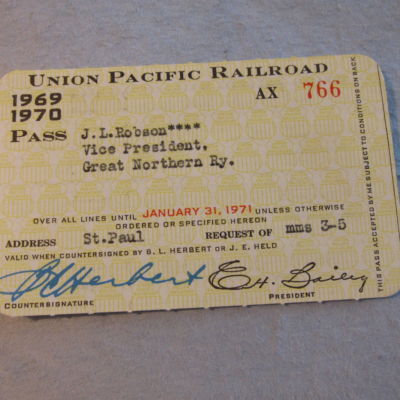 Union Pacific Railway Pass Issued to VP Robson-1969