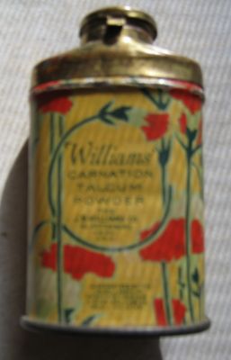VINTAGE J.B. WILLIAMS CARNATION TALCUM POWDER TIN