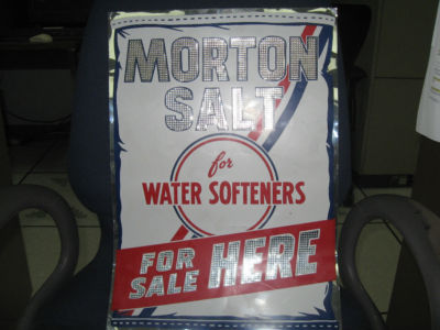 MORTON SALT ALUMINUM SIGN, NEVER HUNG NICE
