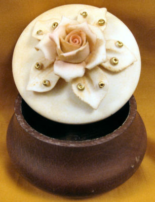 CAPODIMONTE Large Wooden Rose Trinket Pot - NEW