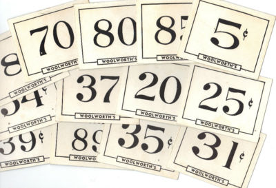 WOOLWORTH VINTAGE COUNTER & WINDOW SIGNS 20 PIECES