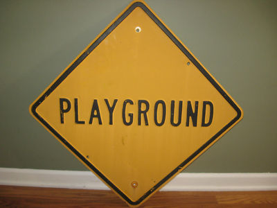 VINTAGE YELLOW PLAYGROUND STAMPED STEEL SIGN