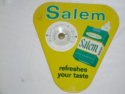 VINTAGE OLD SALEM CIGARETTE THERMOMETER SIGN AD WORKS!!