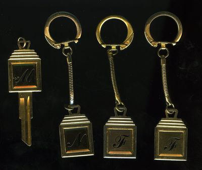 Title (ebay affiliate link): 3 VINTAGE KEY CHAINS MONOGRAM F & N - BLANK KEY WITH M