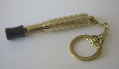 Title (ebay affiliate link): Vintage Goldtone Metal Telescopic Whistle Keychain Used