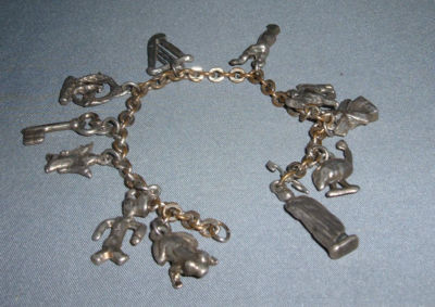 Title (ebay affiliate link): ANTIQUE SILVER CHARM BRACELET W/11 OLD CHARMS--REDUCED!