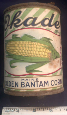 Vintage Tin Can: OKADE CORN w/ Paper Label from 1920's