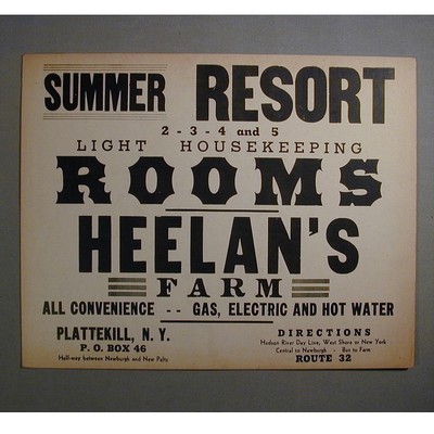 Orig Old HEELAN'S FARM RESORT ROOMS Sign Plattekill NY