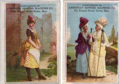 2 Trade Cards American Sewing Machine Nashua NH