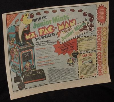 1983 Ad Junior Mints MS. PAC-MAN Sweepstakes "Arcade"