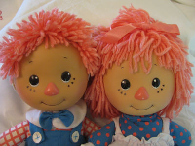 Raggedy Ann + Andy dolls vinyl face pink yarn ADORABLE!