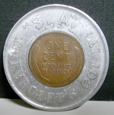 1948-D Encased Coin - "S.A." Chevrolet's Got It!