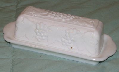 Vintage White Milk Glass Grape Pattern Butter Dish