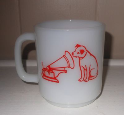 VINTAGE RCA VICTOR NIPPER DOG MILK GLASS COFFEE MUG CUP