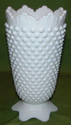 VINTAGE WHITE MILK GLASS HOBNAIL LARGE FLOWER VASE -NR
