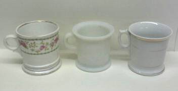 3 VINTAGE SHAVING MUGS ~ IMPERIAL CROWN & MILK GLASS
