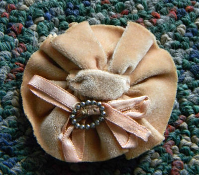 Lovely Antique TINY All Bisque Velvet DOLL BONNET Hat