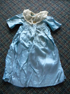 Fine Antique Light Blue Taffeta DOLL DRESS Gown Ruffle