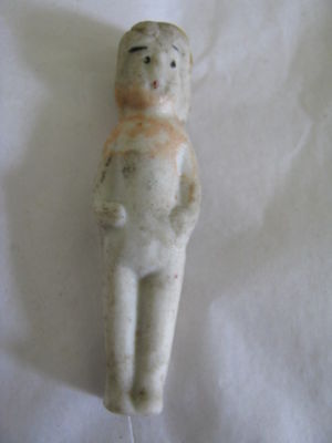 ANTIQUE FROZEN CHARLOTTE DOLL BISQUE BLONDE 2-1/4"
