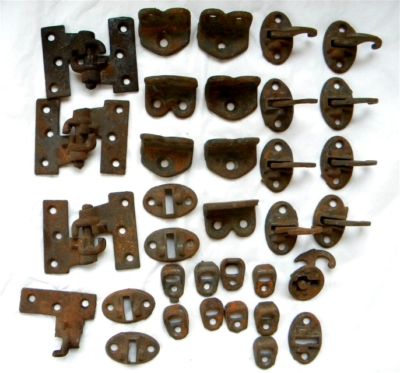 Title (ebay affiliate link): ANTIQUE CAST IRON CABINET HARDWARE HINGES LATCHES BRACE