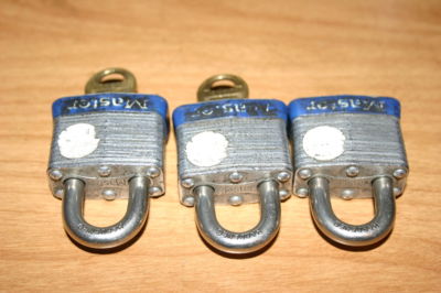 Master Lock Padlock Set Of Three w/ Two Matching Keys