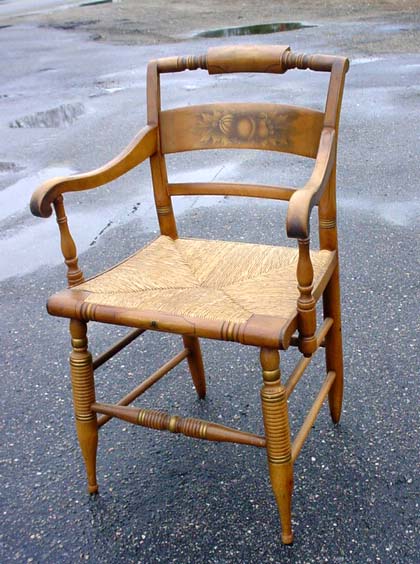 Title (ebay affiliate link): VINTAGE L. HITCHCOCK ARM CHAIR W/ RUSH SEAT 1 OF 2