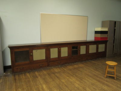 1920s Antique Pine Glass 15 ft buffet credenza cabinet