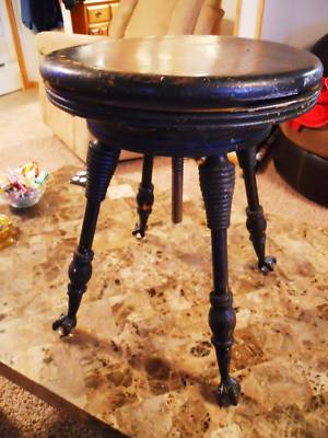 ANTIQUE 1800s GLASS CLAWFOOT PIANO STOOL BENCH